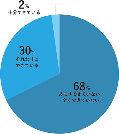 一方で「それなりにできている」(30%)と回答した方もいましたが、「十分できている」はわずか2%でした。