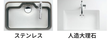 ステンレスや人造大理石などの素材から選びます。