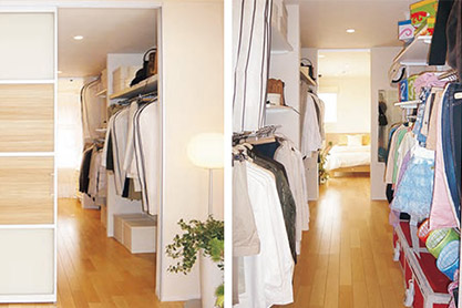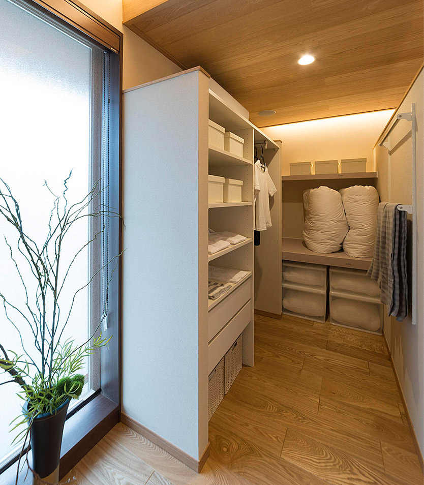 洋服だけでなく、季節の衣類や布団などを保管するためには、寢室には大きめのウォークインクローゼットなどが必要になります。