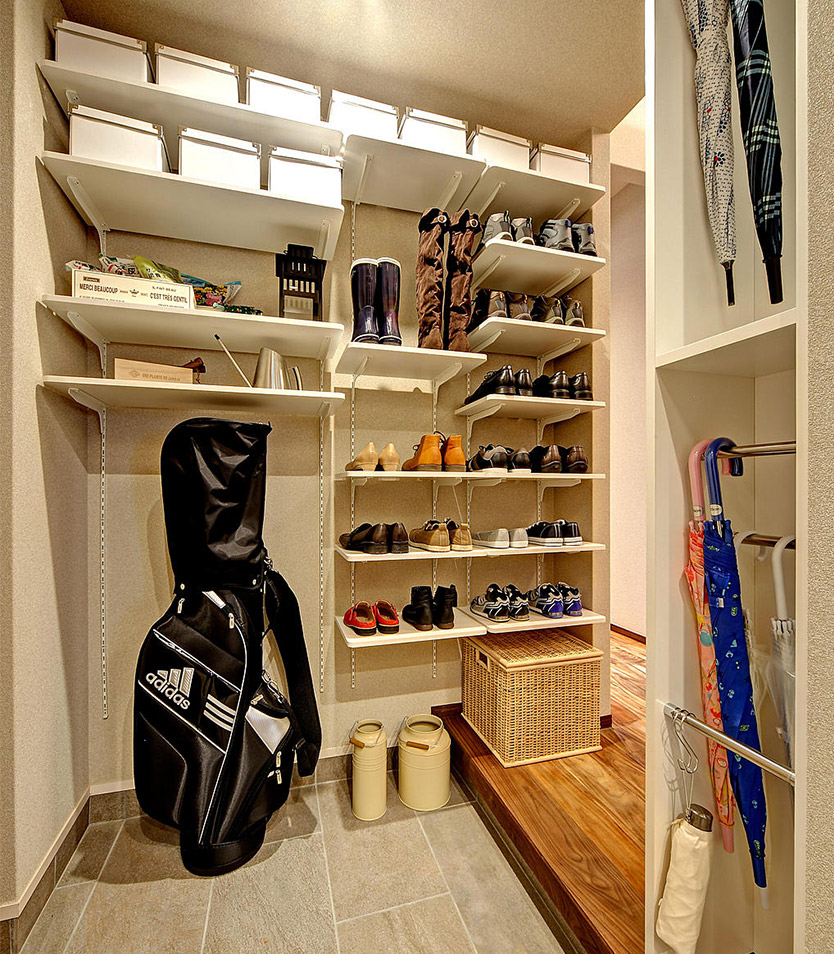 大容量でしまえるウォークインタイプや、玄関からシューズインクローゼットを通ってそのまま室內に入れる、ウォークスルータイプがあります。