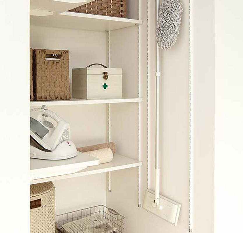 掃除用品やストック品などの頻度の少ないものは収納量を優先するなど、それぞれの使用頻度に合わせて、収納を計畫することがポイントです。