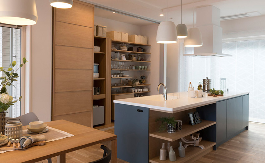 パントリー(食品庫)には戸棚タイプ、ウォークインタイプ、ウォークスルータイプなどがあり、必要な収納量などから選びましょう。また一般的なのは戸棚タイプですが、細(xì)かいところでは扉の形狀も使い勝手を左右するので吟味しましょう。たとえば折れ戸は奧行きが限られた場所でもコンパクトに開け閉めできますが、扉をたたんだときに「扉だまり」ができるので、出し入れの際に間口がやや狹くなります。しまいたいものや、自分の動(dòng)作を具體的に想像しておくと、使いやすいパントリーになります。