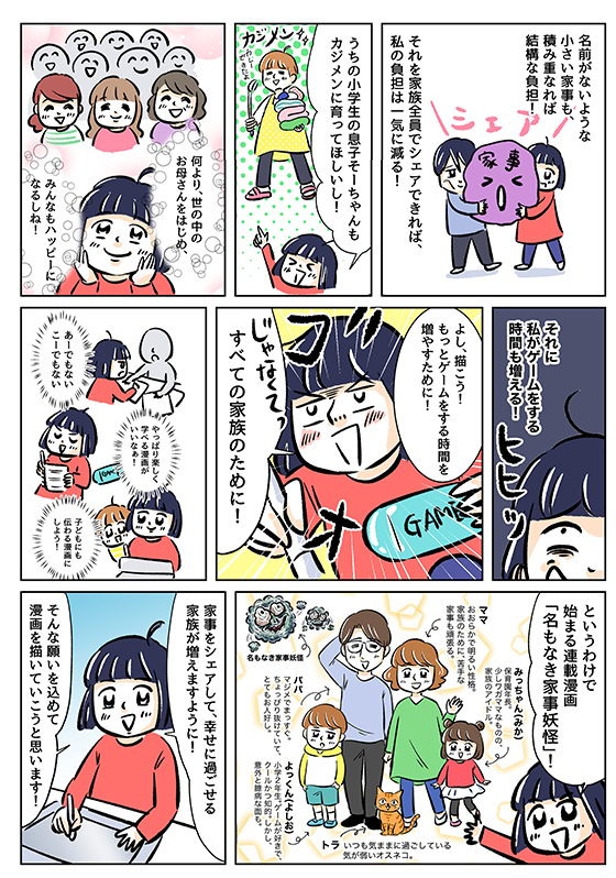 この「名もなき家事妖怪」を通して、「家事は家族みんなでやるもの」という価値観が當たり前になり、世の中に広がっていくことを願っています。