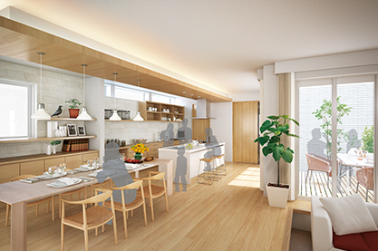 家族や友人と楽しく使える ダイニングに開かれたキッチン