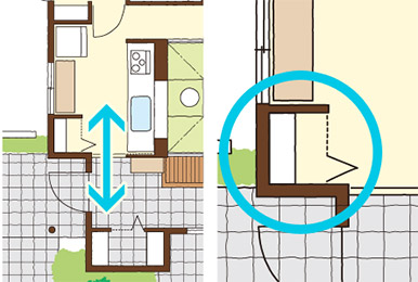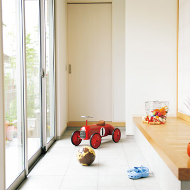 ご近所さんといっしょに、楽しく井戸端會議。そのきっかけ作りに役立つのが、エンガワドマです。エンガワとドマは30cmほどの段差があるので、心地よい木の感觸を味わいながらちょっと座って、庭を見ながらリラックス。そんなのんびりとした日常の中では、ご近所さんとの交流も活発になるはず。「いらっしゃい」「また來てね!」という、溫かいあいさつが聞こえてくるような住まいに。
