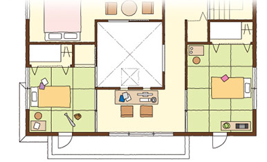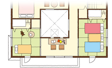 住まいの中心にある開かれた空間がコミュニケーションを促進