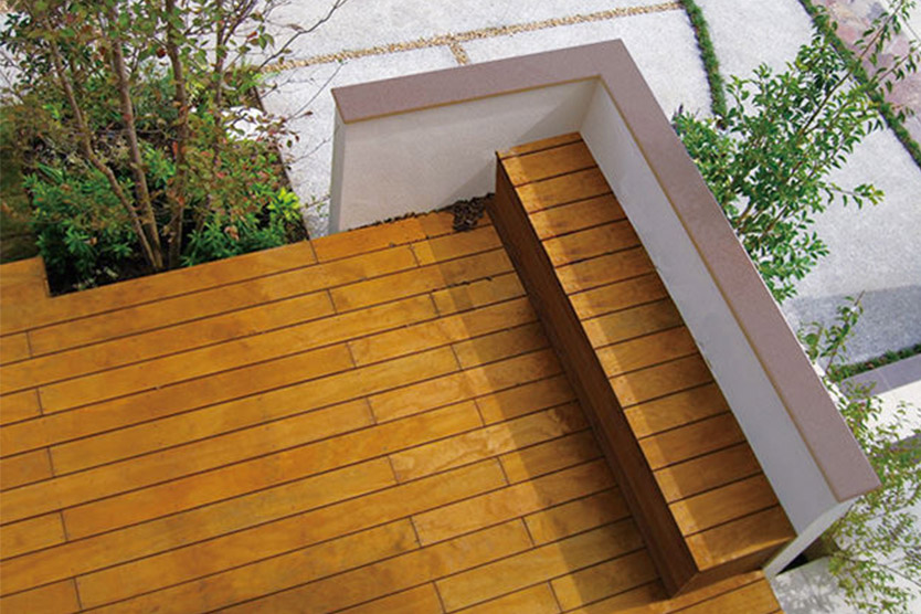 8. ウッドデッキの床素材/柔らかい木材は耐久性に乏しい。夏は熱くて歩けない