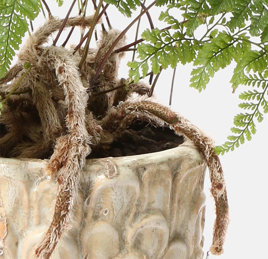 鉢からはみ出して伸びてくる根っこが、まるで貓の腳のような手觸り。シダの仲間です。