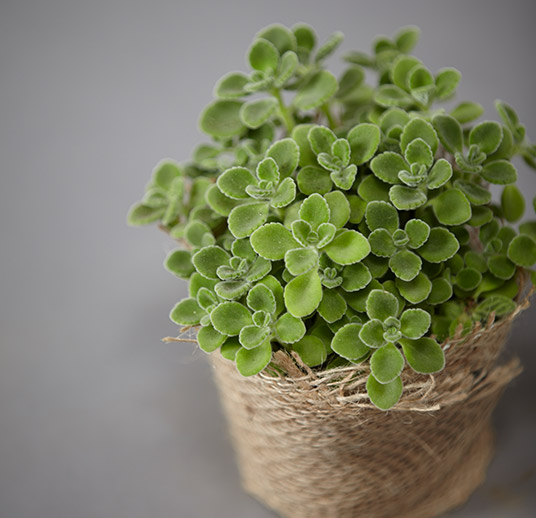 丸い葉には細(xì)かい産毛が生え、耳たぶのような手觸り。ミントのような香りも楽しめる多肉植物です。