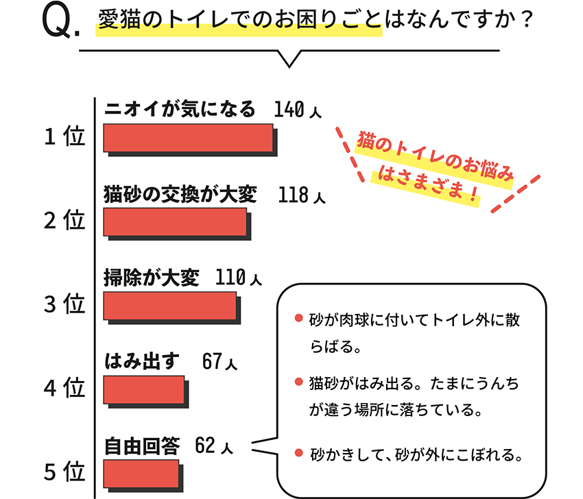 アンケートの結果、トイレのお悩みはさまざま。