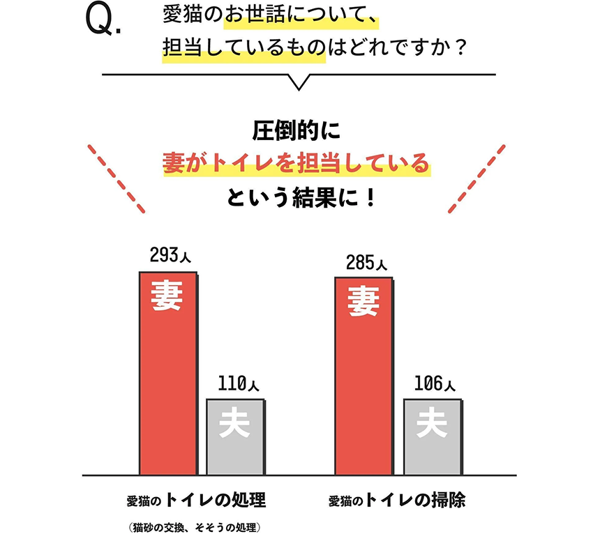 愛貓のトイレ掃除を擔當しているのは圧倒的に「妻」!