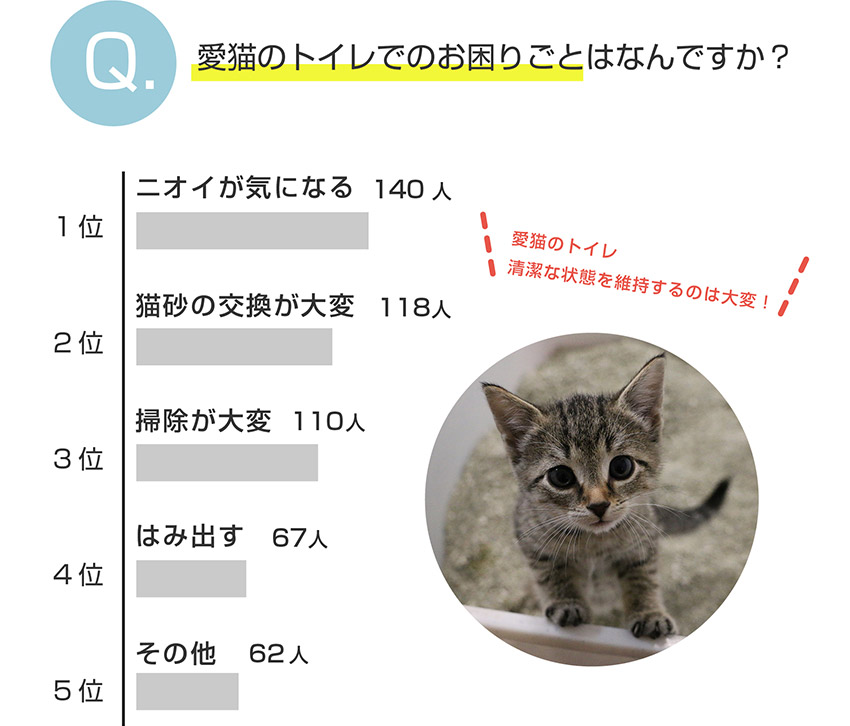 愛貓のトイレでのお困りごとの上位にはニオイや掃除が挙げられました。