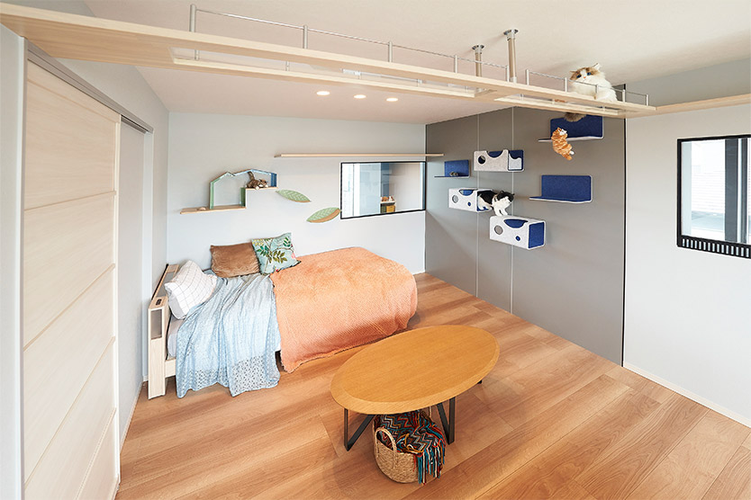 目賀田:それでは家族が集うリビングに、貓がのぼって過ごすこともできる本棚を置くのはいかがでしょうか。飼い主さんにとっても便利だし、背が高くなり過ぎずにちょうどよさそうです。あとはキャットウォークを設置するのも手ですね。