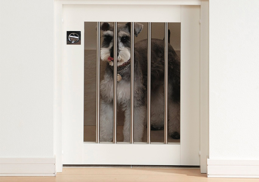 愛犬の居場所となる場所の出入り口に設(shè)置。扉を閉めて出入りを制限できます。
