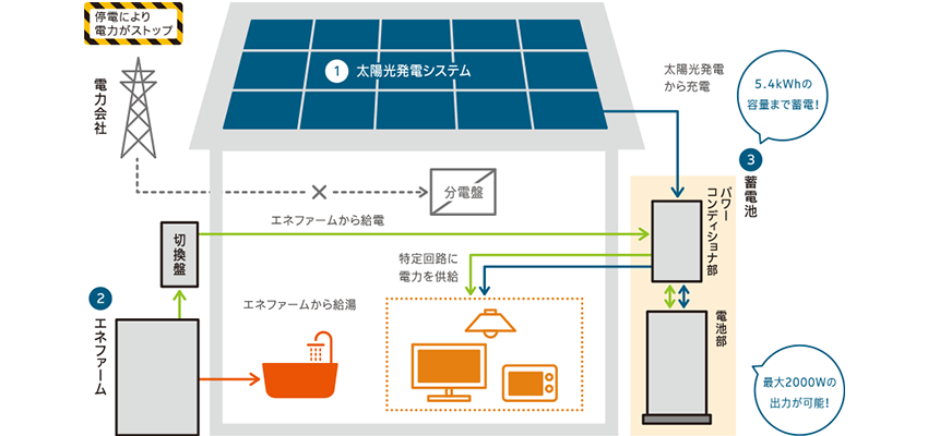「全天候型3電池連攜システム」で停電時も安心