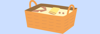 パジャマや部屋著がベッドの上に置かれているのは見苦しいですね。カゴに入れておけば、片づけも簡単です。