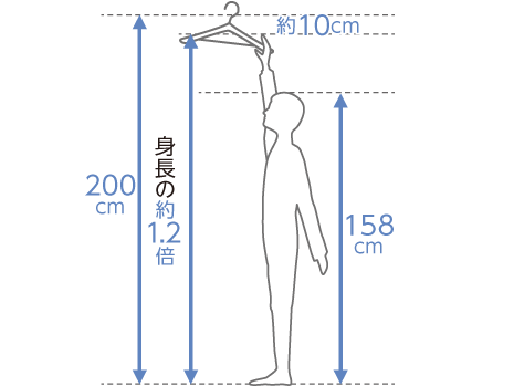 ※女性の平均身長(158cm)の場合、パイプの長さは約200cm