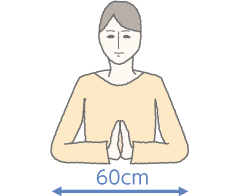 大人が両手を合わせてひじを突き出したとき、その橫幅は約60cm。手に荷物を持った時でも、70cmの通路幅があればラクに出入りできます。
