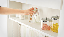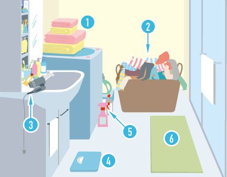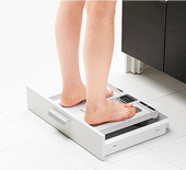 定期的に體重を測りたいけれど、ヘルスメーターは場所をとるしジャマになる。そこで、洗面化粧臺の下など出し入れしやすい収納場所を確保します。
