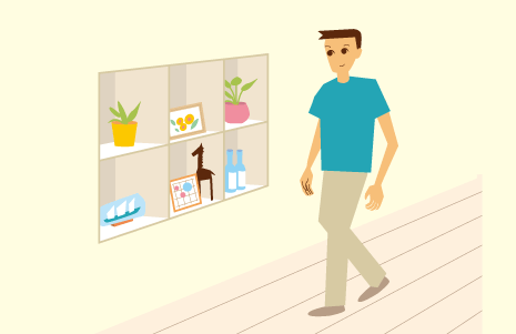 子どもの描いた絵や工作作品、イベントごとの寫真など、思いのつまったものは廊下やホールに設けたニッチにまとめて飾りましょう。