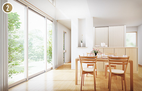 リビングには通常の吹き抜けとほぼ変わらない明るさを確保