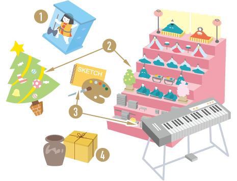 思い出の品や何代も前から家族に受け継がれてきたものなどは大切にしておきたいもの。また、年に1、2回使う程度のイベント用品などは、使用頻度の割に場所をとりがちです。こうした収納物をまとめてしまっておくための場所があると心強いですね。小屋裏や吹き抜け上部などのデッドスペースを活用して、大型収納を確保しておきましょう。