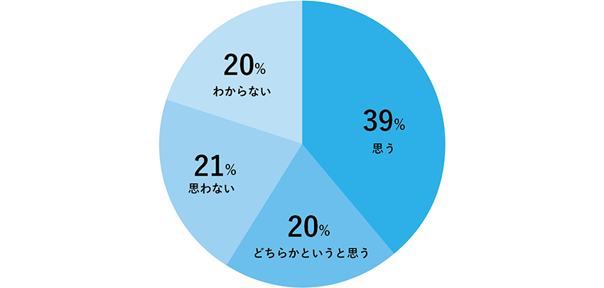 「思う」、「どちらかというと思う」を合わせると、約60%の人が今後もテレワークを継続したい、會(huì)社が許可するならテレワークをしたいと答えています。一方で、「わからない」と答えた人は20%。テレワークに解決すべき課題があることを窺わせる數(shù)字となっています。