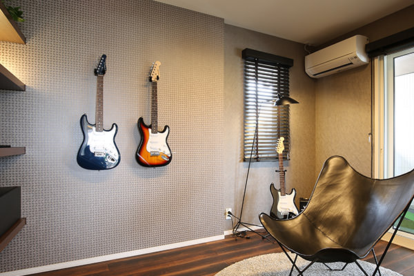 凹凸がある壁材は、照明と組み合わせることで陰影が生まれ、ドラマティックに演出できます。また、大膽なプリント柄の壁紙を貼れば、絵を飾らなくても壁がアートに変わります。