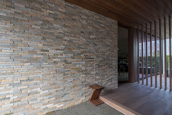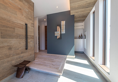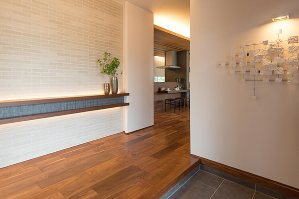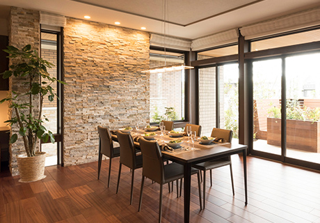 タイルやパネルの材質は、陶磁器質や磁器質、木質、コンクリートなど。本物の石や木などの自然素材を使ったものは風合いがよく、素材の手觸りも楽しめて、高級感を演出できます。クロスと比べると重量があり、モルタル下地や目地などの施工が必要なため、新築時に取り入れるのがおすすめです。