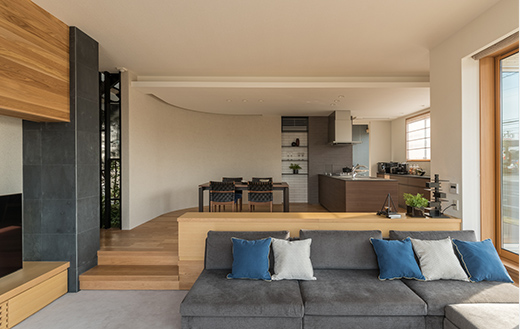 フォーカルポイントとは、空間の中で最も目を引く注視點のこと。入口から入って最初に目にする壁や、いつも座る場所から見える壁など、フォーカルポイントをどこにするかを考えて、その壁面の色や素材を決めましょう。タイルやアクセントクロスなど、コストを優先的にかけると空間にメリハリがつきます。