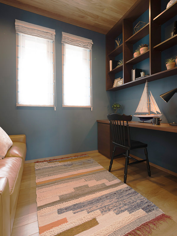 逆に、窓が多くて壁が少ない部屋のように、フォーカルポイントになる壁が必然的に決まる場合は、色の見え方を利用しましょう。例えば、西日の當たる奧行きのない部屋なら、壁を後退色のブルーにすれば、涼しさと奧行き感を感じさせることができます。
