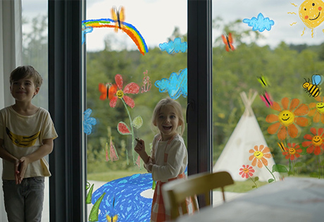 窓ガラスや鏡にお絵描きできる固形マーカー。濡れた布などで簡単に消すことができます。