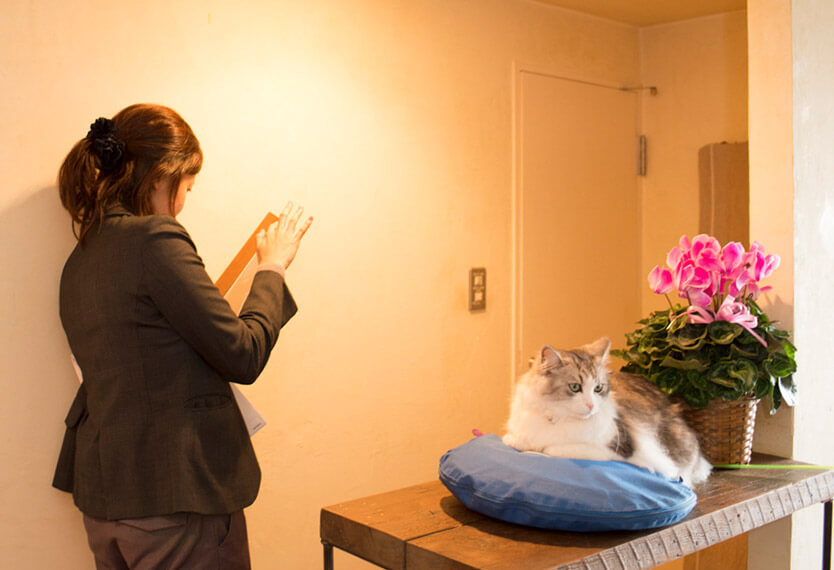 そして、貓が安全に暮らせるようにとの思いから「飾り棚は危険では?」や「破けない網(wǎng)戸はないものか」などのダメ出し?もさせていただきました。