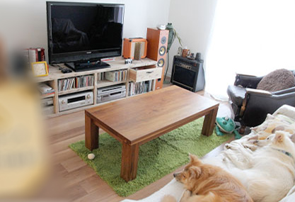 現在のわが家のリビング。寫っている愛犬の紹介は後ほど