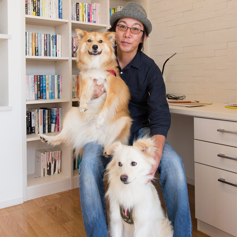 「犬と暮らす家」3階の書斎スペースで大吉、福助と