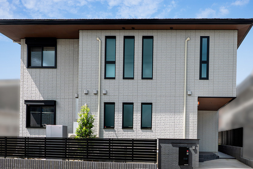 このプロジェクトは土地探しからスタートしました。大和ハウスがご提案した土地は、敷地の正面と裏面が道路に接しており、建物に“スタジオ”と“住宅”という2つの顔を持たせるのに良い條件が整っていました。祭りの日に山車が練り歩く駅側(cè)(正面)は、ミニマルなファサードが印象的なスタジオの顔。住宅街側(cè)(裏面)は、上品な戸建住宅の佇まいを見(jiàn)せています。