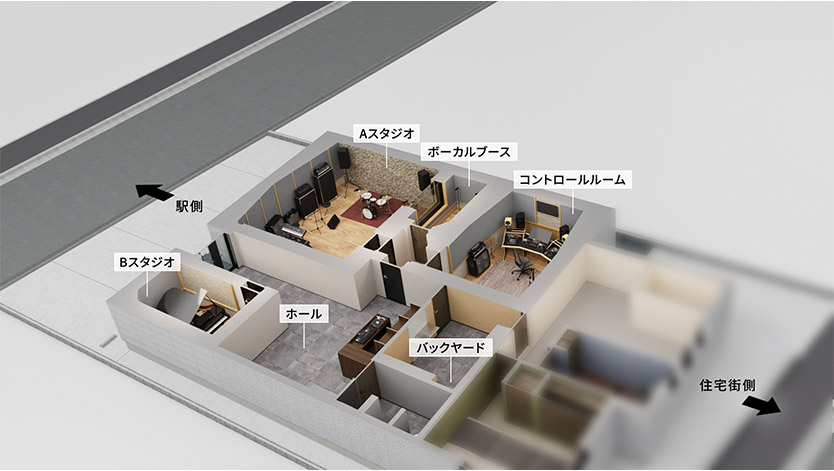 しかし、このまちには本格的な音楽スタジオがありませんでした。そこでKさまは「せっかくスタジオを建てるなら、自分やアーティスト、仕事仲間だけじゃなく、誰(shuí)でも気軽に來(lái)られる商業(yè)スタジオをつくろう」と考えられました。