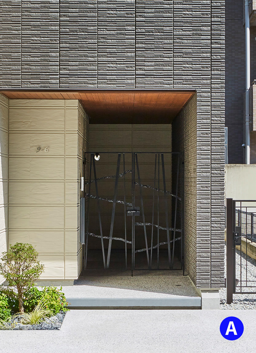 ご夫妻がデザインされた門扉には、家づくりの思い出が詰まっています。
