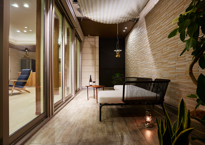 「外なのに室內(nèi)のようにくつろげるので、我が家の“外飲み”はいつもここです」と笑顔で語るご夫妻。雰囲気のあるランタンやグリーンで彩られたバルコニーで過ごす時間が楽しくて、今夜も夜更かしをしてしまうご夫妻です。