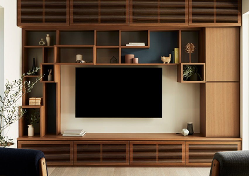 ご夫妻の愛貓アトラスちゃんの「キャットウォーク」としても使えるようにデザインしたオリジナルの飾り棚。