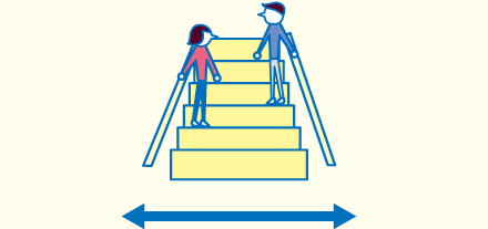居室を広くとるために階段の面積は削られがちですが、大人2人が同時に安定した姿勢で昇降できる幅を確保しました。高さの違う手すりを左右に設け、子どもや高齢者でもつかみやすいよう工夫したほか、LED照明で夜間の安全性を高めました。踏み面は滑りにくいコルク仕様です。
