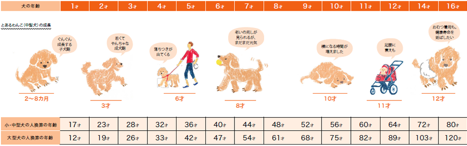 愛犬の長壽のために、現在の年齢をきちんと把握することから始めましょう。人間に置き換えると何歳か、を意識すれば、年齢に応じた予防も考えやすくなります。早めの対応で充実したシニア期を送れるようにサポートしてあげてください。