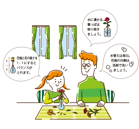 最初のステップとして、一輪挿しを取り入れてみましょう。子どもでも始めやすく、また室內(nèi)のあちこちに飾ってさまざまな種類の花を楽しむことができます。まずは一緒に花屋さんに行き、子ども自身が好きな花を選べるようにすると良いでしょう。店員さんに花の名前やお手入れ方法などを聞くと理解が深まり、親以外の大人と會(huì)話をする機(jī)會(huì)にもなります。