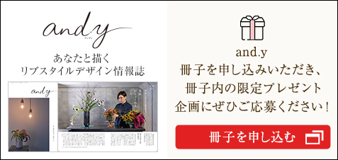 ![[あなたと描くリブスタイルデザイン情報誌 and.y] and.y 冊子をお申し込みいただき、冊子內(nèi)の限定プレゼント企畫にぜひご応募ください!冊子を申し込む](/tryie/and/common/images/bnr/bnr_pre2.jpg)