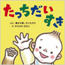 海外では赤ちゃん絵本は言葉や色、形を教える初等教育の本として扱われることも多いですが、日本の場合は親子の関わりを生み出すものが主流です。指をさしたり、くすぐり合ったり、顔を見合ったりと、スキンシップが生まれる工夫が多くみられます。例えば、『たっちだいすき』※1はハイタッチをしながら楽しめる絵本。『ぶう ぶう ぶう』※2では親子で一緒に「ぶう」と聲を出して読み進められます。ば行、ぱ行、ま行など、赤ちゃんが発しやすい両唇音が多用されるのも赤ちゃん絵本の特徴です。赤ちゃん絵本で、親子の楽しいひと時を過ごしませんか。