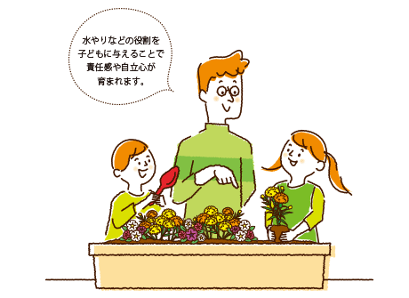 花を買ってきて飾るのも良いですが、自分の手で育てればより長い期間楽しむことができます。また、種や苗を植える際に土に觸れるのは、発達過程にある子どもにとっては重要なこと。土いじりをすることで五感が刺激され、脳が活性化します。雑菌に対する免疫力の向上も期待できるでしょう。