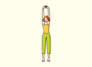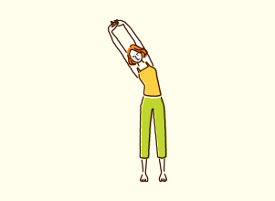 2左右に少し體を倒して、體のわきも伸ばしましょう。
