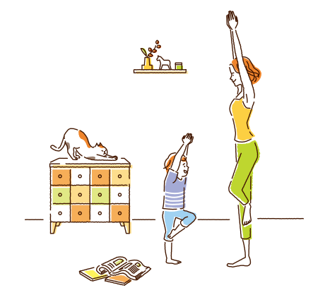 エクササイズや體を使った遊びを家族で一緒に行うことも、お互いの健康狀態の変化に気付くきっかけになります。「おしくらまんじゅう」などの遊びや、ストレッチに取り組んではいかがでしょうか。