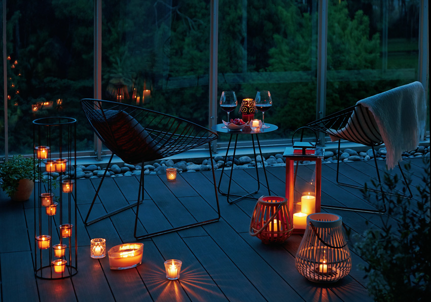 ※テラスやバルコニーなどでキャンドルを使用する場合は、ランタンやホルダーなどを使用し、火の粉が防水面に觸れないようにしてください。