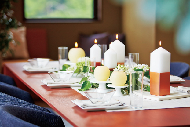 存在感が際立つキャンドルを置けば、ダイニングテーブルがたちまちゴージャスに
